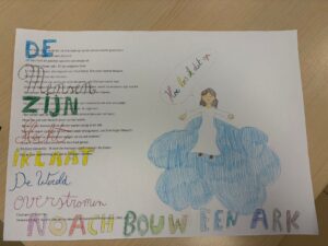 Oud speelgoed binnenbrengen, vlaggetjes kleuren, winkel versieren, speelgoed helpen versjouwen… niets was voor onze vormelingen teveel om de Sint een handje te helpen. Voor wie wil was er nog een extra thuisopdrachtje met de vraag: Hoe deel jij soms met de anderen thuis?
