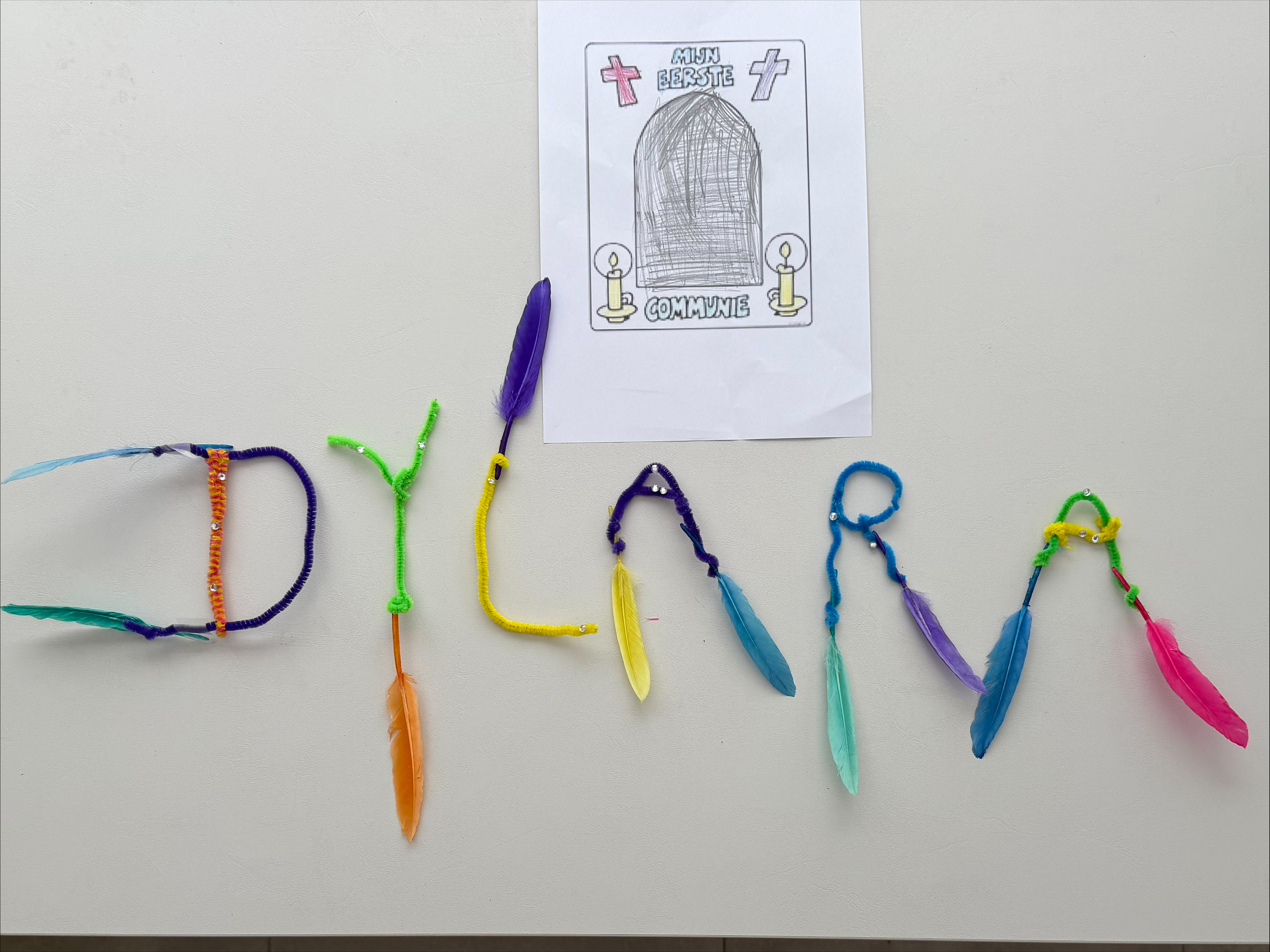 Geknutselde namen van onze eerste communicanten!